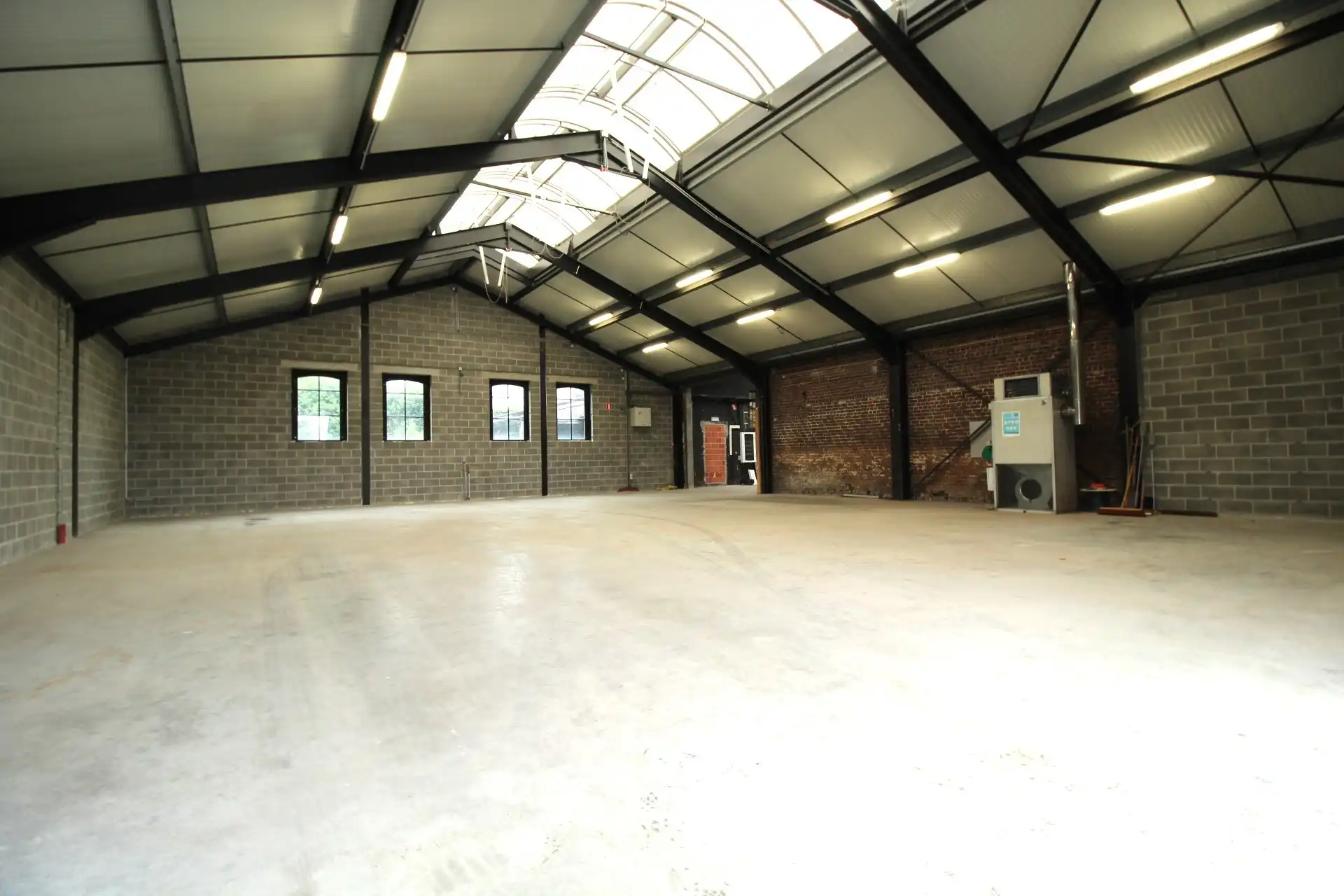 Het magazijn is uitgerust met een verwarmingsinstallatie, elektriciteitsvoorziening en een regenwaterrecuperatiesysteem met twee tanks van telkens 10.000 liter. Daarnaast werd het dak volledig vernieuwd en is de ruimte afgewerkt met een gepolierde betonnen vloer, wat zorgt voor een duurzame en onderhoudsvriendelijke ondergrond.