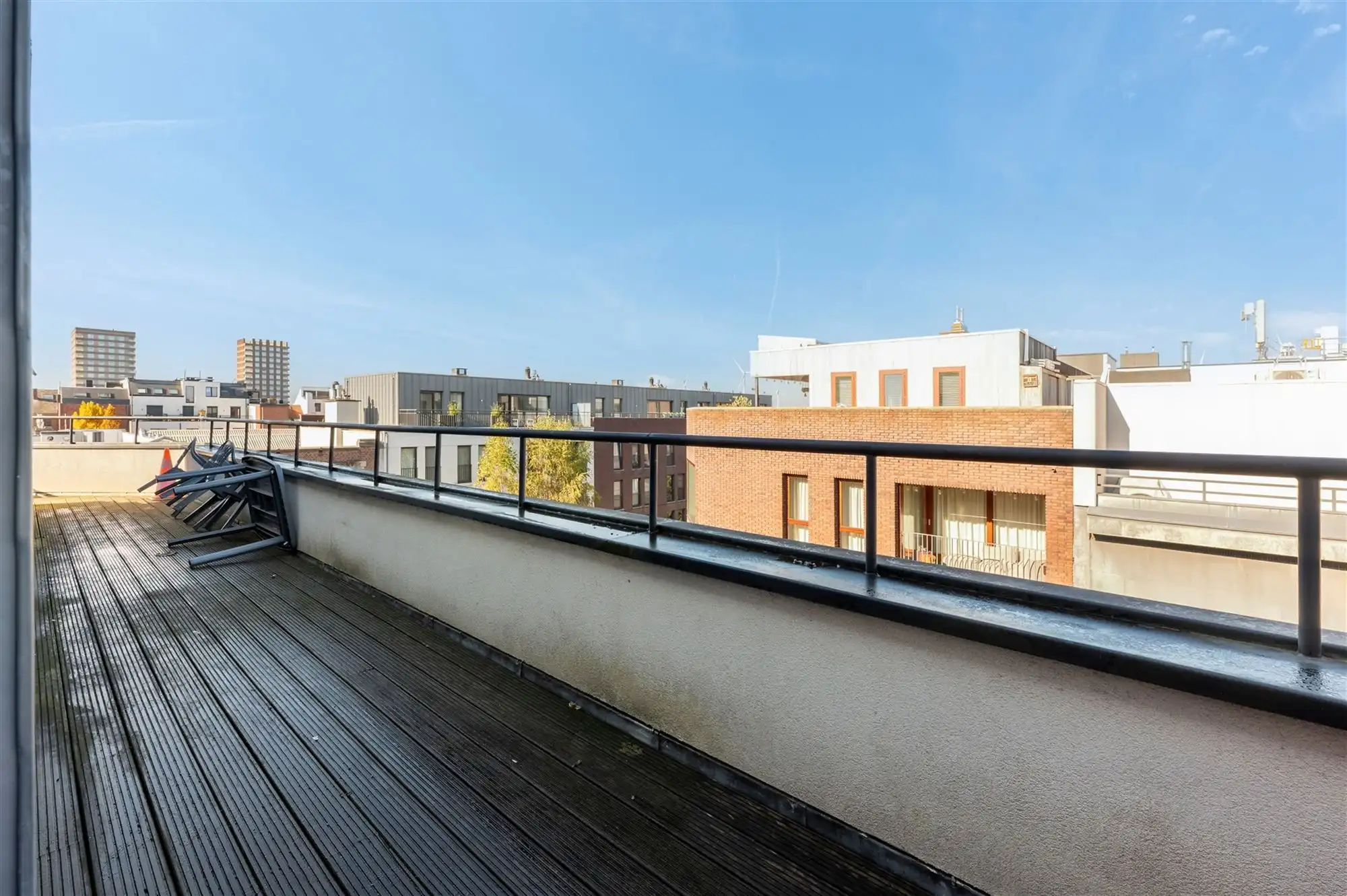 De kamer beschikt over een ruim terras met zicht op het Havenhuis.